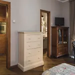 Modernes Studio Mit Gemeinschaftlichen Pool offers a seating area and a fully equipped kitchen, as well as comforts like air conditioning. The apartment features a bathroom with hair dryers. Furthermore, a bidet, a separate toilet, and a shower is available.